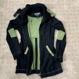 Icelandic Design Cora Boiled Wool “Tech” Coat Women's S Dark Gray Green Warm.