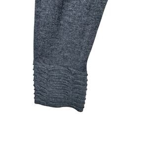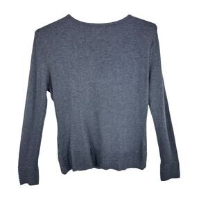 Excellent preowned condition. Gray long sleeve V-Neck lightweight tight knit pullover sweater. Has textured trim around bottom hem & ends of sleeves. Viscose/nylon material. Approx. measurements: Shoulder to hem 25", pit to pit 21", sleeve from neck to sleeve hem 29". Size L.