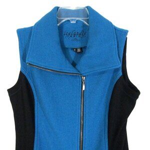 Icelandic Design Hybrid Vest Blue Black Wool Womens Size S Full Zip Pockets