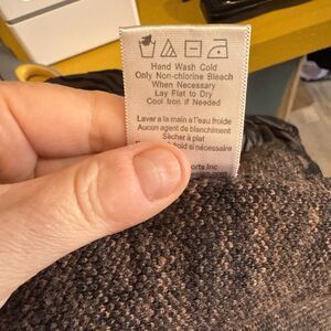 Icelandic Design Long Wool Cardigan Nordic Scandi Medium Black Tan Good preowned condition. Wool blend, hand wash, lay flat to dry.