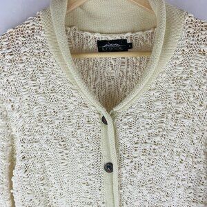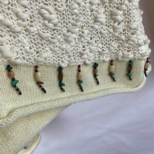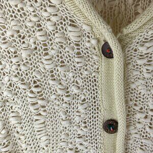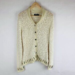Icelandic Design Open Knit Cardigan Sweater Large Ivory Cream Beaded Cotton