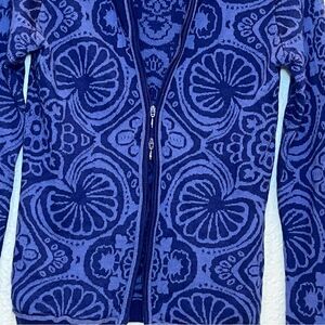 Icelandic Design Patterned Full Zip Wool Blend Sweater in Royal Blue size Small