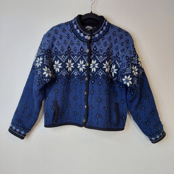 Icelandic Design Snowflakes Lined Wool Sweater Cardigan Size Meduim