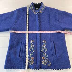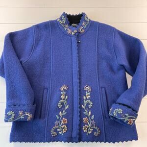 Icelandic Design Vintage Purple Zip Up Sweater Embroidered Flowers Size Large