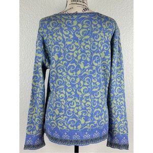 Icelandic Design Women’s Floral Print Blue Green Cardigan Sweater, size Large