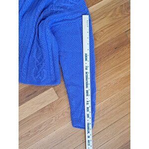 The full-zip style of this sweater adds a touch of classic elegance to its design, while the vintage look gives it a unique charm. This sweater is perfect for those who appreciate timeless fashion and quality materials. Add this sweater to your collection today and make a statement wherever you go. Color is purple. Some pictures make it look blue but it is purple. Mild pilling. See pictures for lay flat measurements as vintage fits smaller. Classic business casual Church Academia Capsule wardrobe piece career