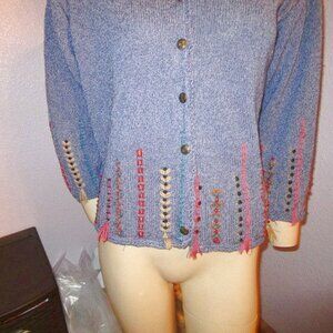 Icelandic Design Women's Silk Blend Cardigan Size L Embroidered Crop Artsy Boho