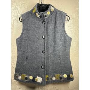Icelandic Design Womens Vest Black Patchwork 100% Wool Button Front Size Small