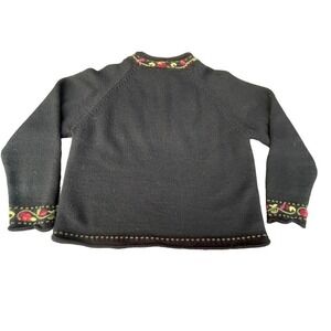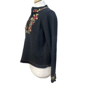 Icelandic Design Wool Blend 1/2 Zip Nordic Floral Design Sweater