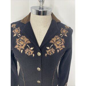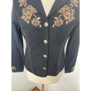 Icelandic Design Wool Cardigan Sweater Floral Embroidered Sz S Black Tan Western
