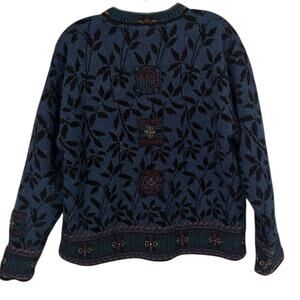 Icelandic Design Y2K Wool Blend Embroidered Jacket Women's M Blue Leaf Pattern. Excellent condition. Fast shipping!