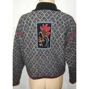 Icelandic Design Wool Cardigan Sweater Floral Embroidered Flowers Vintage Small.