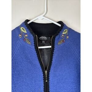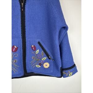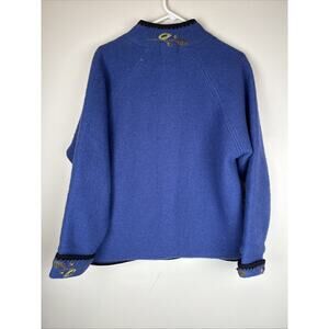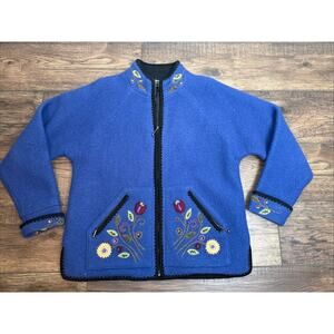 Icelandic Designs Embroidered Wool Zip Up Knit Cardigan Sweater Blue Womens M