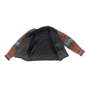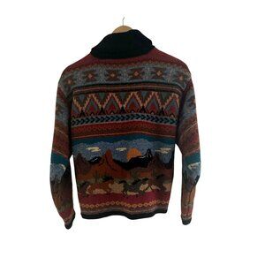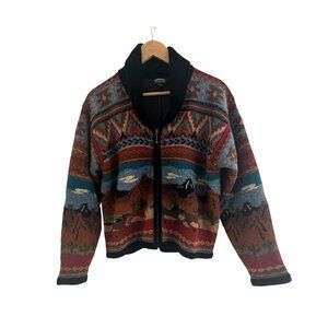 Icelandic Southwestern Horse Print Wool-Blend Sweater Cardigan Zip Jacket Size M