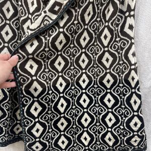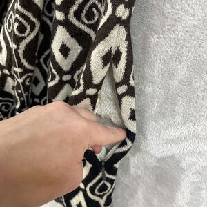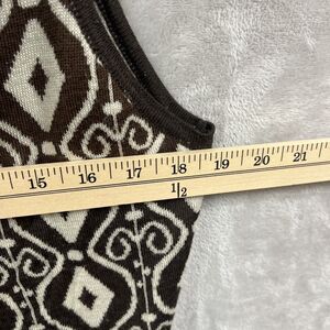 Icelandic Vest Top M Brown Geometric Print Mid Length Waterfall Open Front Wool