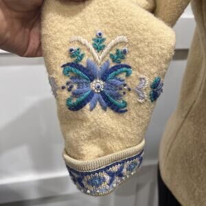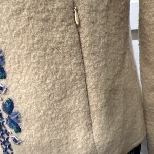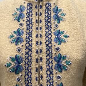 Icelandic Wool Sweater Zip Closure Women’s Small, Cream And Blue. Zipper side pockets. 100% wool, polyester lining.