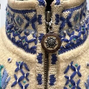 Icelandic Wool Sweater Zip Closure Women’s Small, Cream And Blue