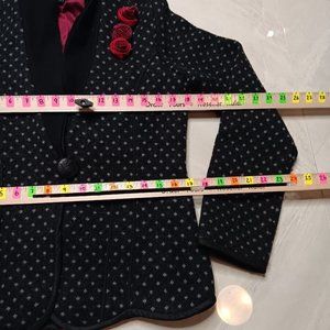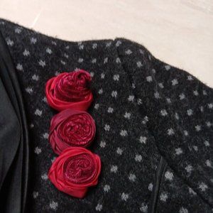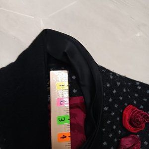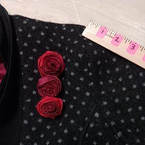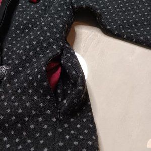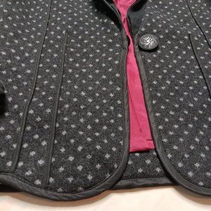 Icelandic design Wool Cardigan MEDIUM Gray Sweater Silk Neck Polka-dot jacket