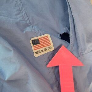Lightweight hooded pullover jacket - shade of blue. Two front button pockets. Drawstring hood & around waist. Icelantic Skies Return to Nature. Golden, Colorado patch on the sleeve. Handmade in USA.