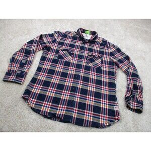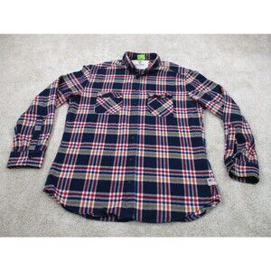 Up for sale is a - Icelantic Shirt Men Large L Blue Red Flannel Plaid Ski Casual Button Up *