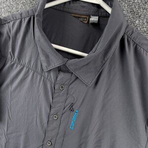 Icepeak Men XL Button Up Shirt Gray Chest Pocket Logo Short Sleeve Stretch Adult
