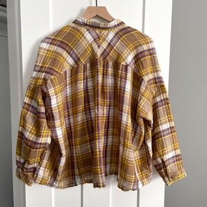 Ichi Antiquites Plaid Linen Button Front Shirt
