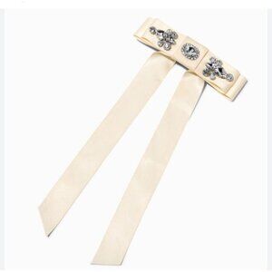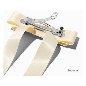 Icing 2 Piece Hair Ivory Rhinestone Studded Satin Long Tail Hair Bow Clip