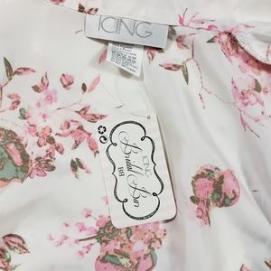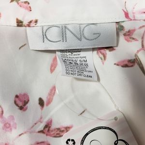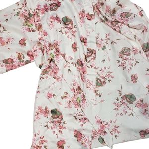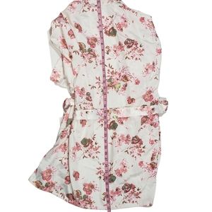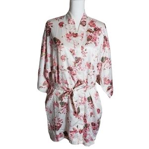 Icing Bridal Bar Pink Floral Dressing Robe Size S/M Satin Kimono Lingerie Belted