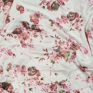 White in color with an all over pink & green floral pattern