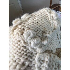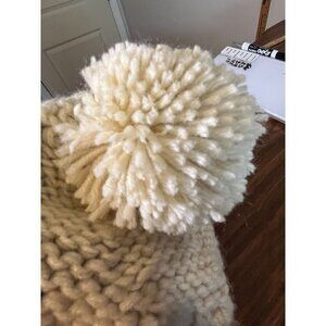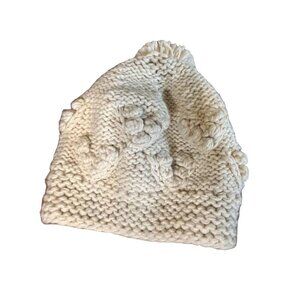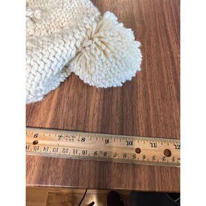 Icing Hat Women Cream 9" Knit Beanie Pom Heart Cable Winter Snow Ski 80s Retro