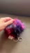 Fluffy fur pom pom with vibrant colors. Perfect for keys or bags. Adds a fun touch.