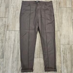 Icon Amsterdam Pleated Tapered Pants Men’s 2XL Brown Grey Slim Tailored Trousers