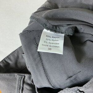 This is a pair of slim fit, tapered leg, gray, flat front pants from Icon Amsterdam. Has pockets. NWT, bnwt, brand new with tags. No flaws. Stretchy rayon, nylon, spandex fabric.