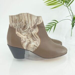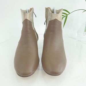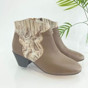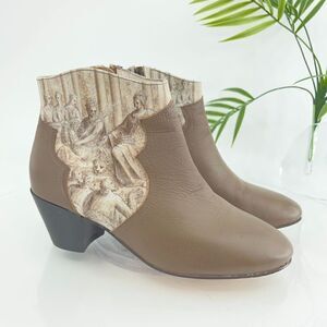 Icon Kay Boots Women's Size 7 Brown Beige Boho Leather Booties Low Heel Artsy