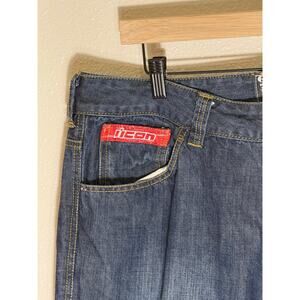 Icon Strongarm 2 Double Knee Motorcycle Riding Blue Denim Jeans Mens EUC.