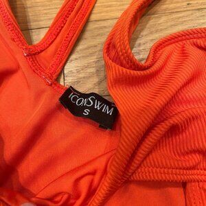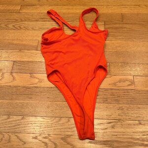 Icon Swim Mesh Cut Out Thong Cheeky Orange One Piece Swimsuit Women’s Small