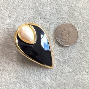 Gorgeous black enamel and faux pearl over brass art deco style earrings for pierced earrings
