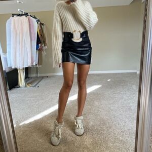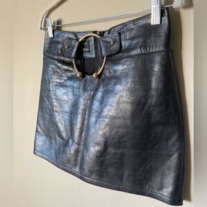 Iconic Anthony Vaccarello Genuine Leather Mini Black Skirt Ring Size 0