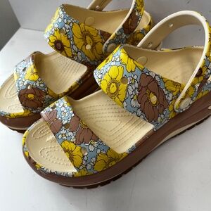 Crocs Mega Crush Sandals platform , chunky heeled comfort sandal.