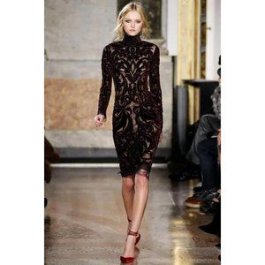 Iconic Emilio Pucci F/W 2011 Bordeaux Velvet-Embroidered Dress IT 44, US 8