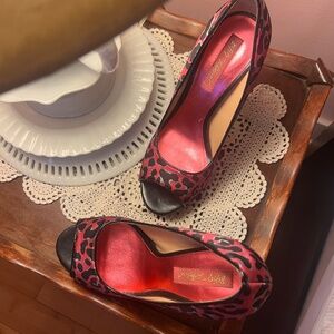 Iconic Hot-Pink Leopard-Print Peep-Toe Betsey Johnson Platform Heels
