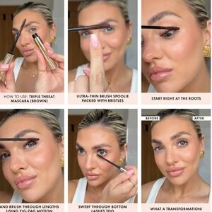 Enhance your lashes with Iconic London's brown mascara. Perfect for a natural look.