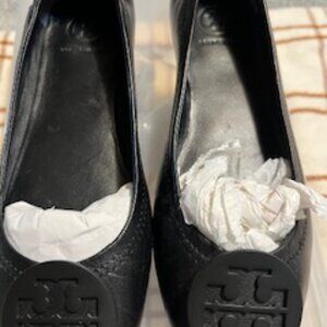 Iconic NWOT Tory Burch Black Leather Soft Flats Never Worn Size 7 1/2 Medium. Absolutely perfect condition. No flaws. I just bought a 1/2 size too small and didn't have the chance to exchange them. Non-slip sole. Stretchable. No box, but I can include the plastic shoe box. A great deal.