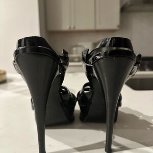 Iconic Saint Laurent Tribute Black Patent Strappy Sandal
