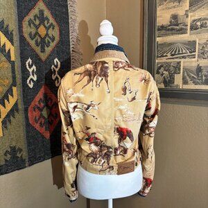 Iconic Ralph Lauren Rodeo Print Coat, Size M. Cotton twill accented with cotton corduroy collar. Loved and cared for with minimal wear, especially for its age.