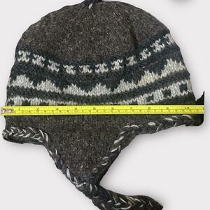 Iconic Wool Ear Flap Warm Winter Hat Made in Nepal OS Brown & Grey Ties & Tassel