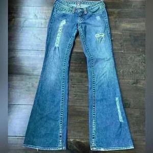 Iconic Y2K BEBE Bling Jeans Low Rise Flares Rhinestone Distressed