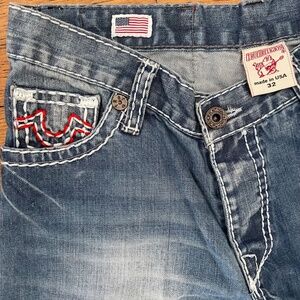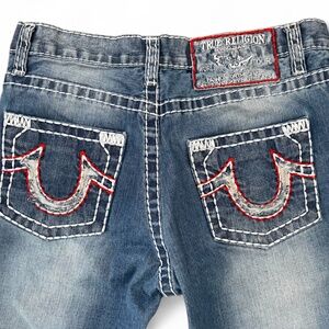 Iconic Y2K True Religion Mickey Big T Jeans Wide Stitching Low Rise Sz 32