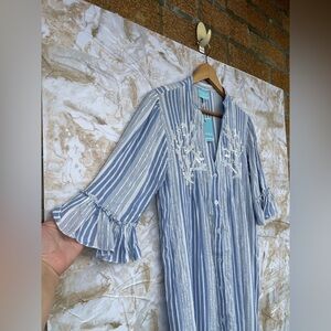 Gauze with sequins and metallic detailing buttons up striped dress NWT