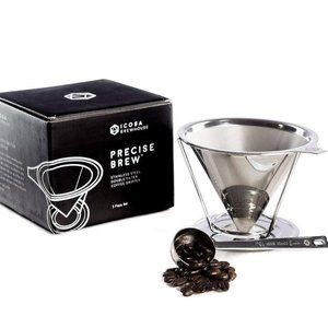 ICOSA Living PreciseBrew Removable Stainless Steel Pour Over Coffee Dripper Set Double Mesh Filter Stand Coffee Scoop